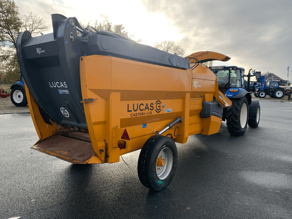 CASTOR+ 80 GC, DESILEUSE / PAILLEUSE LUCAS CASTOR+ 80 GC DE 2023, PEIGNE HYDRAULIQUE, PNEUS 285/70R19.5 20%, ATTELAGE FIXE – CARDAN GRAND ANGLE, PESEE – GOULOTTE UNIVERSELLE, FILET DE MELANGE CASTORMIX SYSTEME – AIMANT SUR GUIDE DE DESILAGE